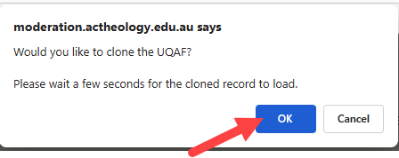 To clone a UQAF, go to the list of all UQAFs (https://moderation.actheology.edu.au/uqafs/), find the relevant UQAF, using filters, sorting or search function.