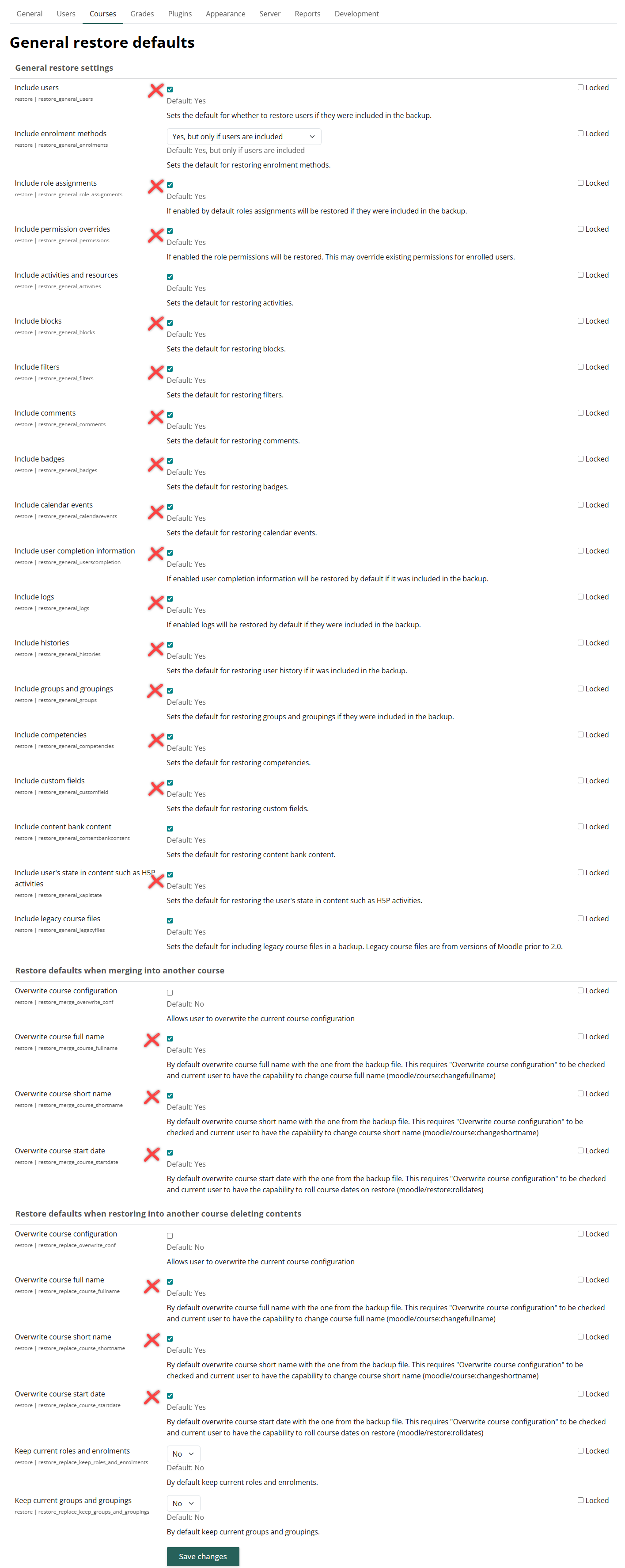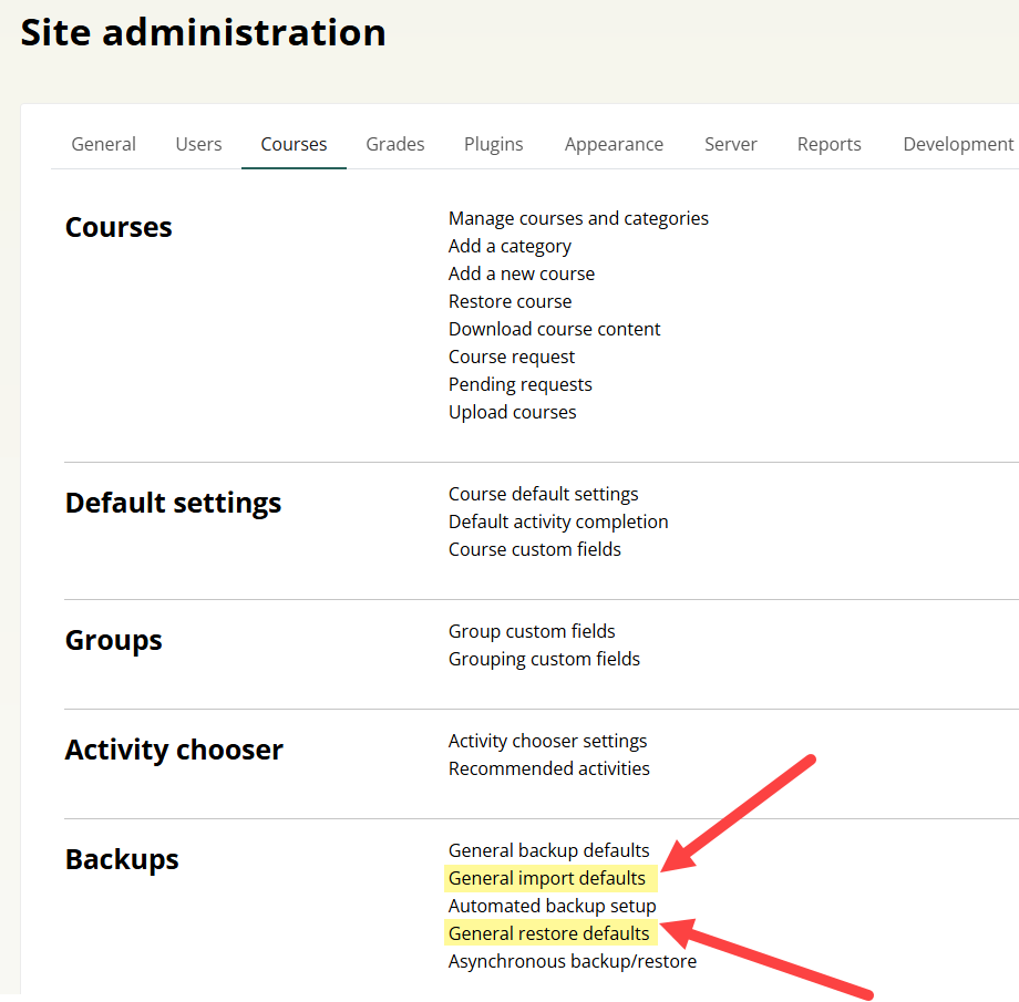 - When restoring a past Moodle course into a Moodle course created by the Moderation Portal, use the section "Restore into an existing course" and select the Moodle course that was created by the Moderation Portal.