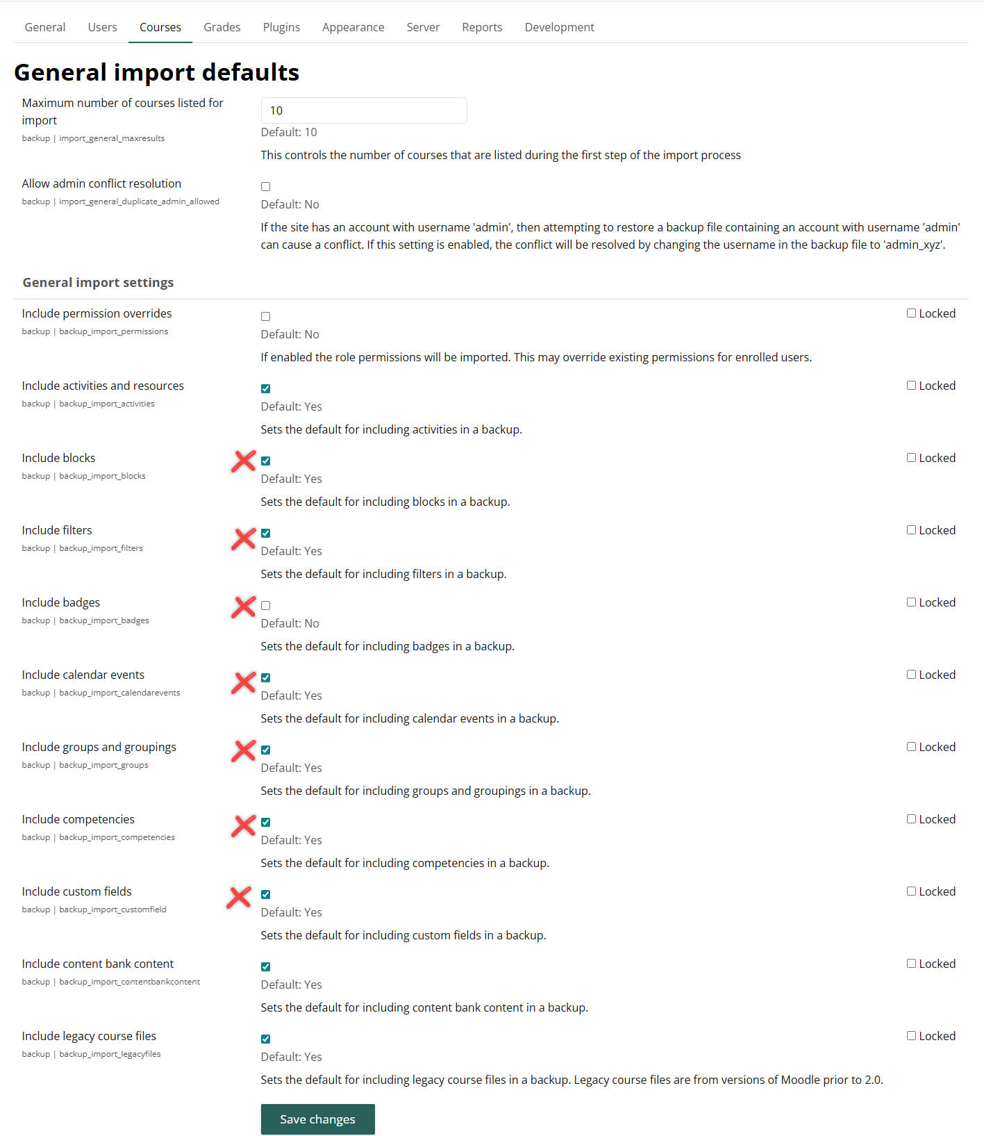 - On the Schema page, we recommend to untick all Turnitin and Assignment activities*. This means you will need to re-create them manually on the new Moodle course.